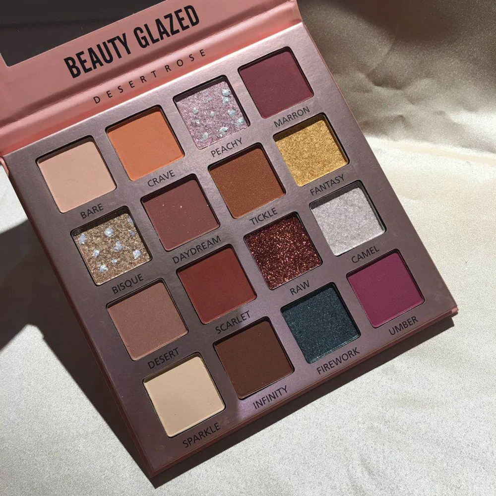 Beauty Glazed New DESERTROSE Nude Eyeshadow Palette Waterproof Shimmer Glitter Jewels Shadow Powder
